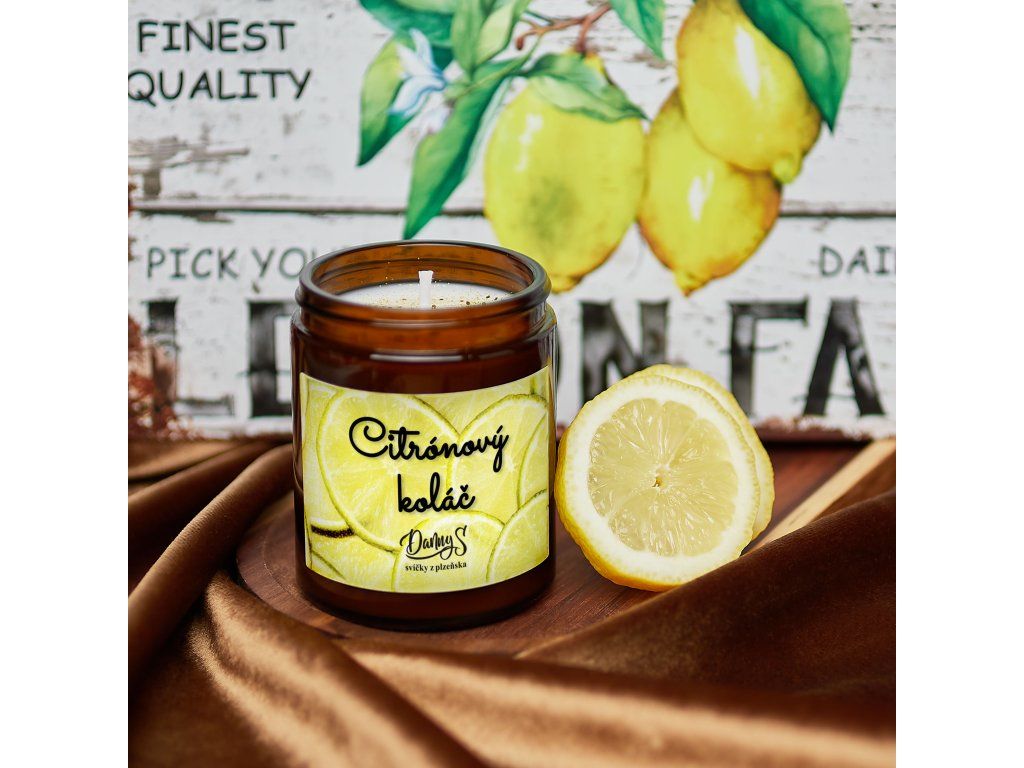 Hnědé sklo o velikosti 180 ml, 150 g vosku, doba hoření je v průměru 30+ h